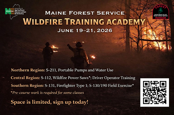The Maine Forest Rangers frequently offer training opportunities to firefighters, fire departments, and logging contractors. Most training announcements are sent directly to cooperators who work with the Forest Rangers via email. Announcements are also sometimes posted on the Maine Forest Ranger Facebook page.