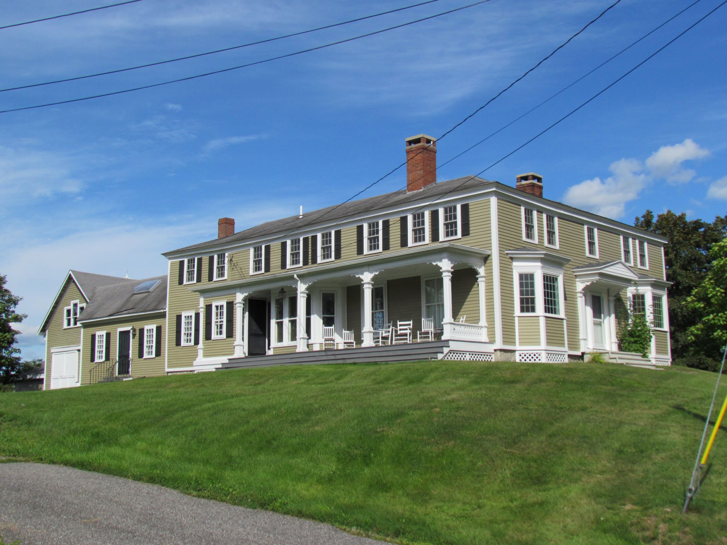 Major General Alexander Campbell built this two-story house on Campbell Hill. Considered a "distinguished" man in eastern Maine, Campbell served in the military during the French and Indian War and commanded a militia during the American Revolution. Like many in the area, he was prosperous in the lumber industry. He also served in the Massachusetts State Senate, was a Judge of the Court of Common Pleas, an original overseer of Bowdoin College, and negotiated a treaty with the Passamaquoddy Indians. Little documentation exists about the original configuration of the house, though its Federal era construction is indicated by its low-pitched hipped roof and substantial brick chimneys. The addition of Italianate-style features in the 1870s are most prominent, including bay windows, a porch with square columns, and a gabled hood supported by thick brackets.