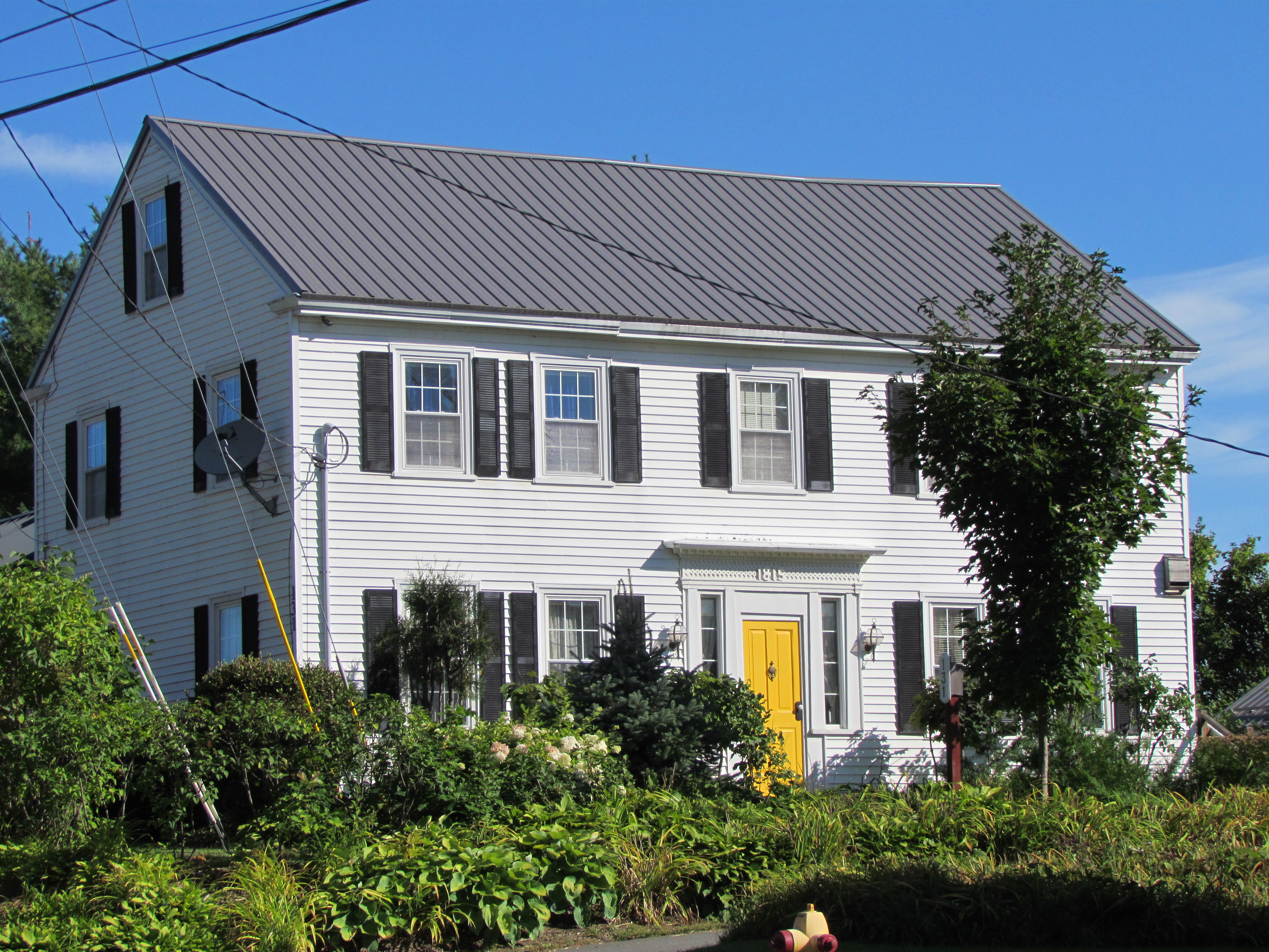 Located on North Main Street, the Robert Carleton House is one of the oldest surviving dwellings in Piscataquis County. Its later Federal style was a sophisticated choice considering this area was newly settled at the time it was built. The house is rectangular and two-and-a-half stories high. The central door is framed by sidelights and pilasters with an entablature displaying intricately carved fretwork. The house likely had a substantial central chimney that has since been removed. During the early 1800s milling became a significant industry in the area. Guy Carlton, a local mill worker, began his own operation called Carlton Mills. After some success he purchased land, built the house, and sold the dwelling to his brother Robert within a year. Robert Carlton was active in military affairs, including the Aroostook War of 1839, and was a Colonel in the Fifth Regiment. He lived in the house until 1835.